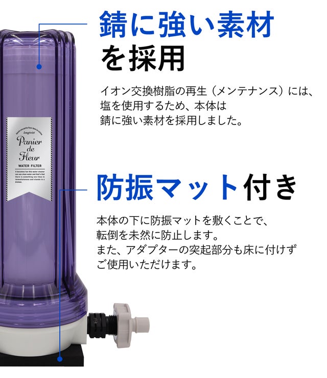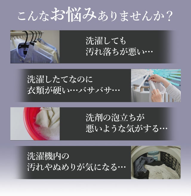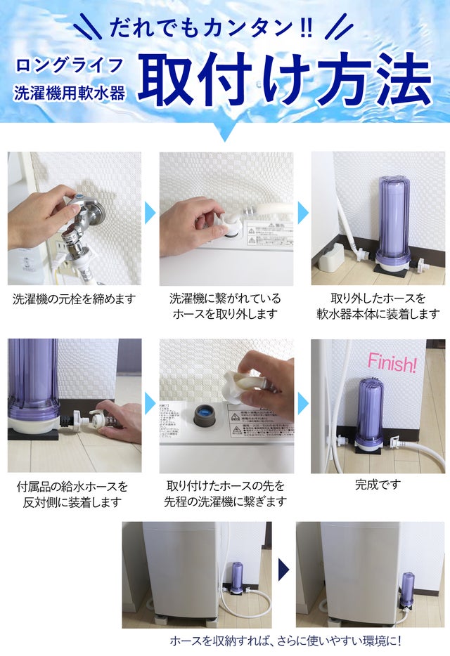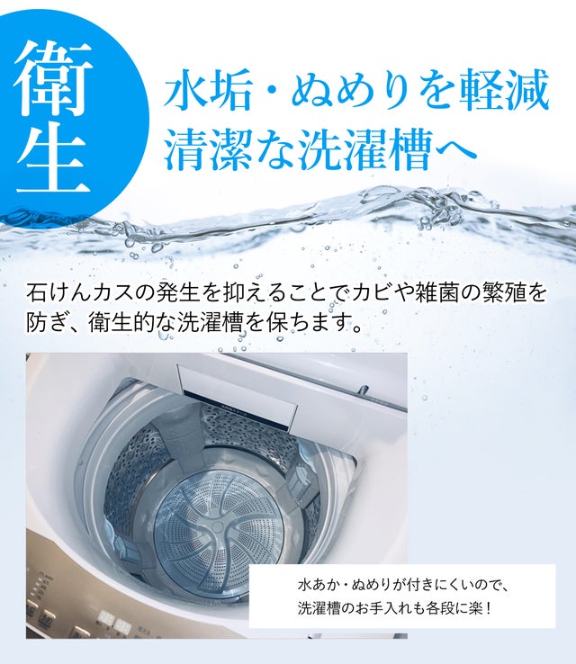 硬水地域では、シャワーの次に、悩みの種となる”洗濯物”。ごわごわする、洗剤が泡立たない、汚れが落ちにくい、、などのお悩みを解決できるよう開発しました。詰め込んだノウハウと実用性、品質は、水にこだわる浄水器メーカーが自信をもってお届けします。