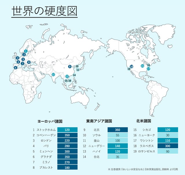 - 海外の水道水を日本の水道水レベルの軟水(硬度1mg/L以下)に!