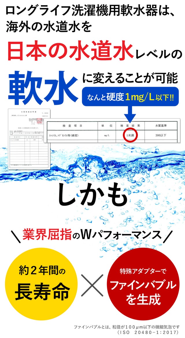- 特許申請中特殊アダプターで『ファインバブル』を生成し、硬水による洗濯物のお悩みを解消!