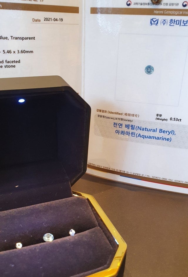 セレナーデはAA~AAA等級の間の最上級アクアマリンを使用しています。
