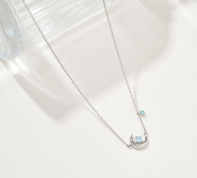 天然アクアマリンネックレス(太陽ネックレスまたは月ネックレスお好きな方をお選びください)