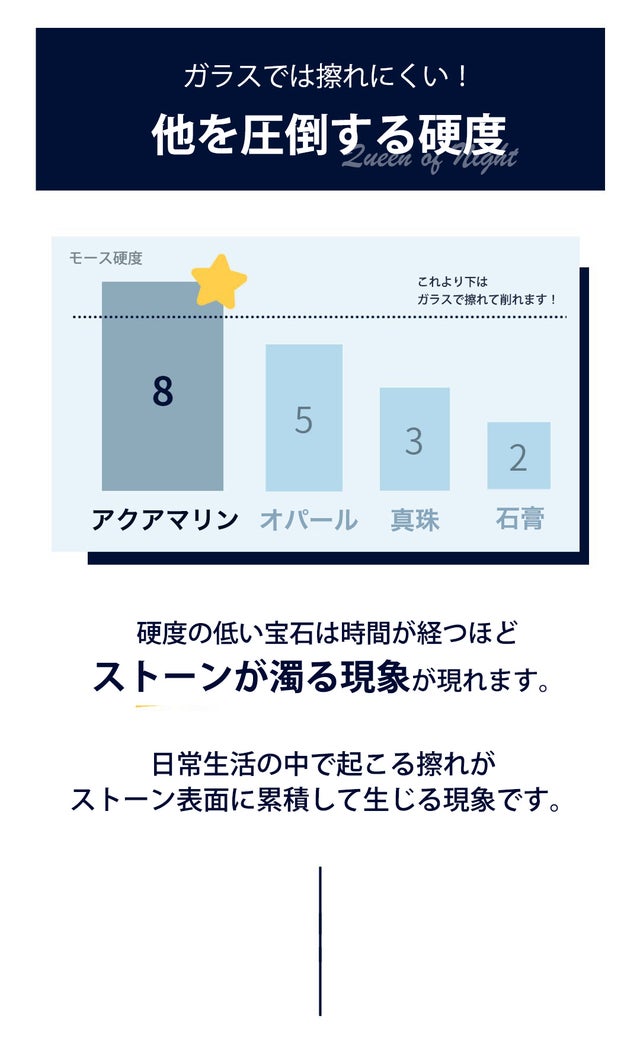 - 別名「夜の女王」の異名を持つ天然アクアマリンを使用!