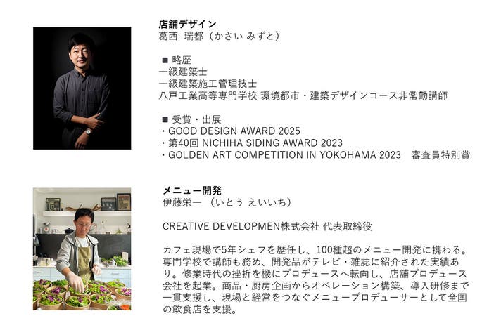メニューはCREATIVE DEVELOPMENT社の伊藤氏とともに開発しました。計12回もメニュー表を作り変えることになりましたが、本当に楽しい時間でした!