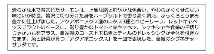 魚と野菜が育つ「アクアポニックス」をイメージしたシグネチャーサラダ