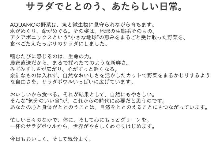 「Makuake(マクアケ)」は、実行者の想いを応援購入によって実現するアタラシイものやサービスのプラットフォームです。このページは、 レストラン・バーカテゴリの 「アクアポニックス農園直送。プレミアムサラダボウル店『AQUAMO』虎ノ門に誕生」プロジェクト詳細ページです。