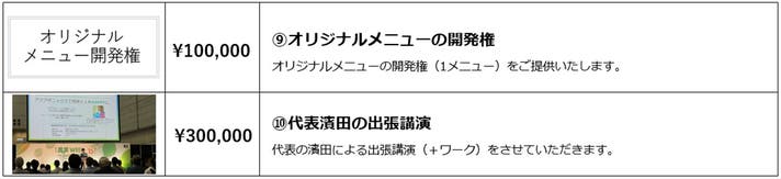 オリジナルメニューの開発権(1メニュー)をご提供いたします。
