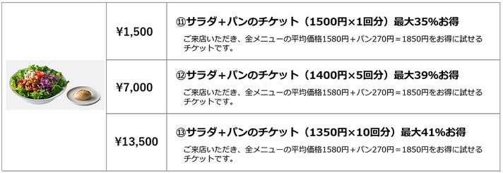 【来店できる方限定】サラダ+パンのチケット(1350円×10回分)最大41%お得