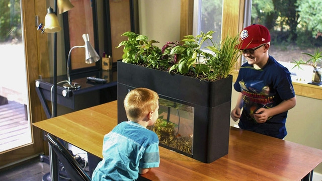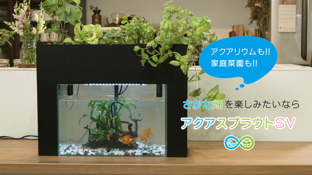 「アクアスプラウトSV」が家庭に1台あれば、魚の飼育(アクアリウム)と家庭菜園を一緒に楽しむことができます。