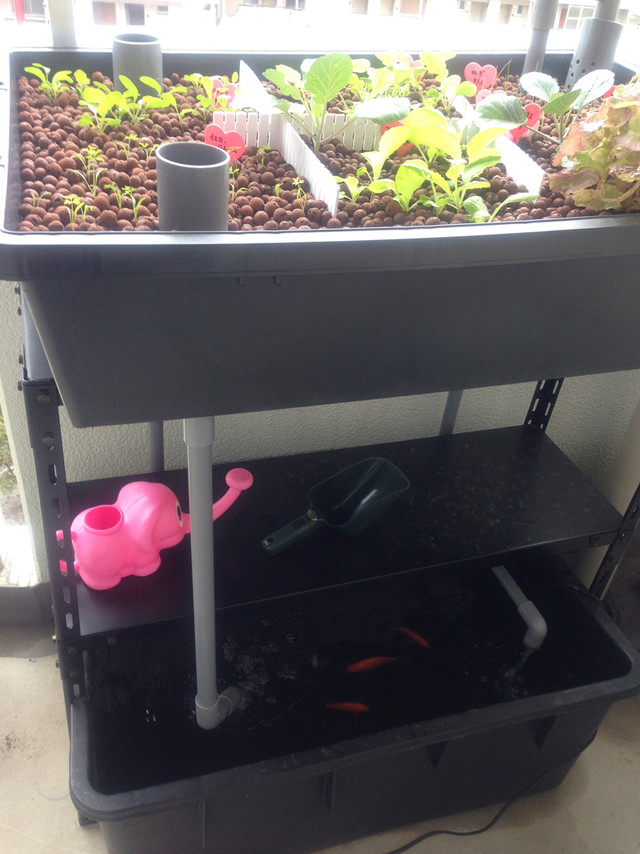 簡単に言うと、野菜の水耕栽培と魚の養殖を組み合わせて、野菜と魚を同時に育てます。