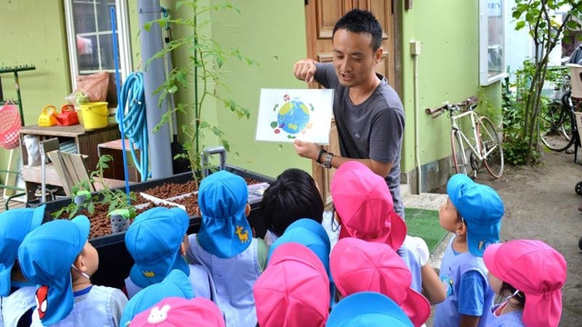 そして、近所の幼稚園でアクアポニックスを作り、園児たちと一緒に野菜を育てることをはじめました。