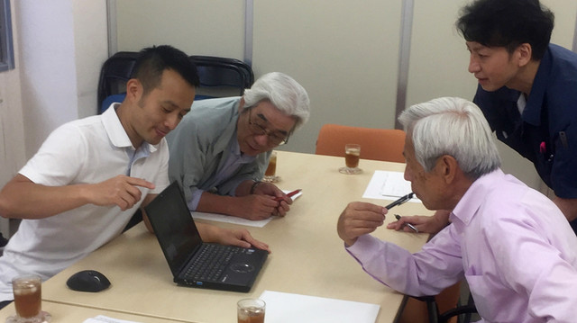 ▲ 設計者の島田さん、工場長の鈴木さんと(工場にて)