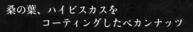 カカオにミルクをミックスしたホワイトチョコにそれぞれ桑の葉とハイビスカスをコーティングしたペカンナッツとなっています。