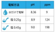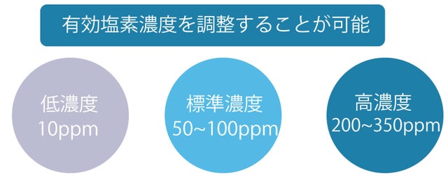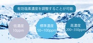 電解して生成する際に、塩の量を調整することによって、電解次亜水・次亜塩素酸ナトリウムを生成することが可能です。