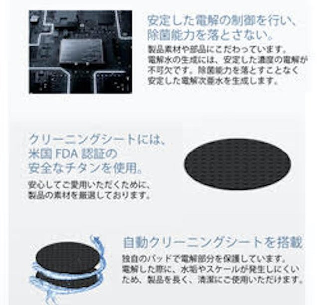 - 安定が難しい電解次亜水・次亜塩素酸ナトリウムを新鮮な状態でいつでも使用可能