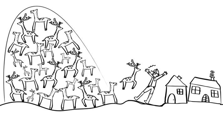 *樹皮まで食べてしまう増えすぎた鹿は、森を荒らし、痩せさせてしまいます