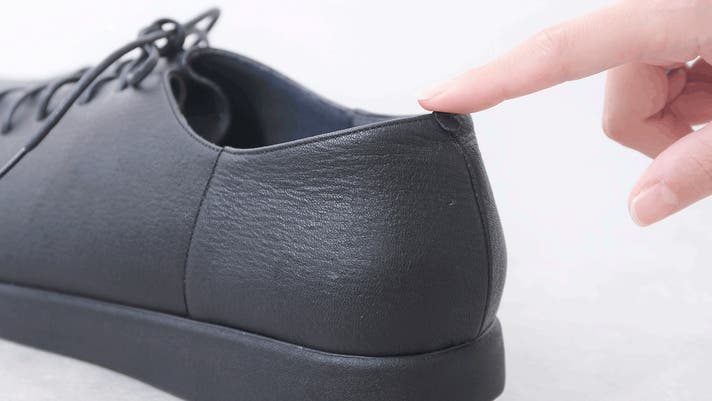 かかとの上の方だけ、芯材を抜いて柔らかいままにしてあります