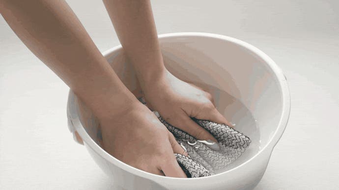 その秘密は、ポリウレタン弾性繊維(ライクラ®ファイバー)と独自のメッシュ構造による洗浄構造。