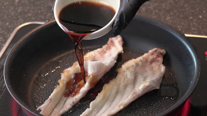 ③両面に焼き色が付いてきたらタレを入れ照りが出るまで煮詰める。