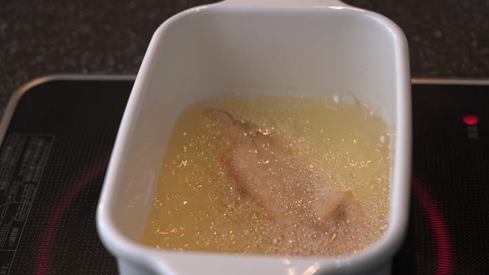③きつね色になるまで油で揚げる。