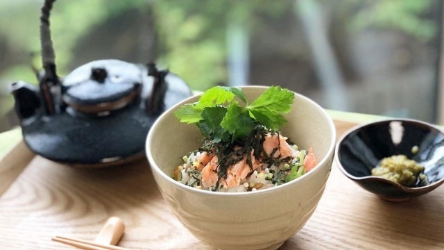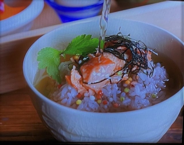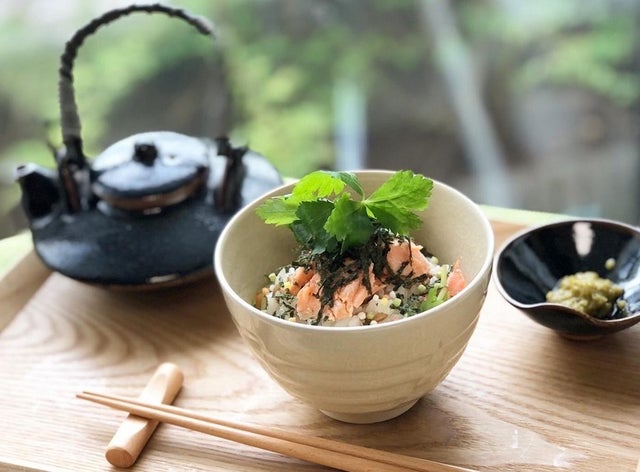 ▼鮭の出汁麹茶漬けを「飯碗」「汁碗」で。