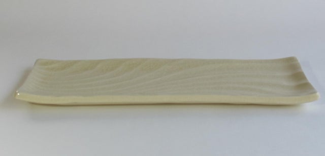 第68回伝統工芸展(日本工芸会※主催)で入選した「象嵌皿」で用いた 地元吹上浜の風景を思わせる波文技を「波文角皿」に