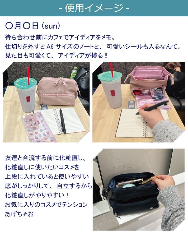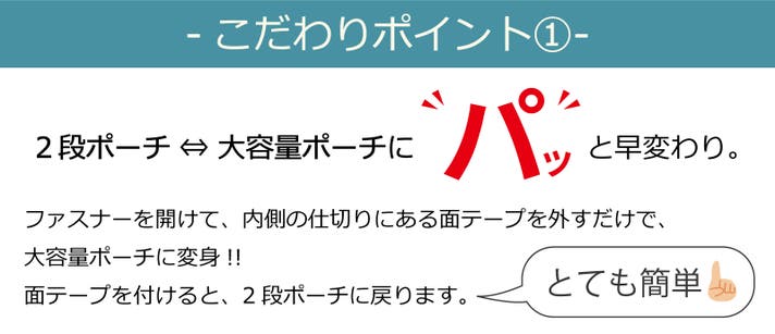 - 【内容量が変化】仕切りを付けるだけで、2段ポーチに早変わり。普段使いでも旅行にも最適!
