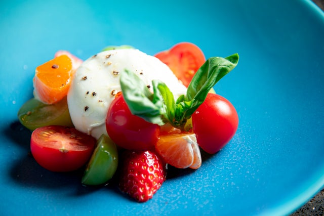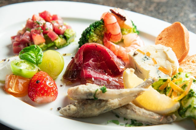 イタリア産のモッツァレラチーズと季節のフルーツ、トマトをオリーブオイルと塩コショウで味付けした一品。モッツァレラチーズのもちもちとした食感とフルーツの爽やかな甘味が合わさることにより、ミルキーでさっぱりとした甘みが口の中に広がります。