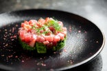 ハーブソースとわさびで和えたアボカドとマグロ赤身にイチゴを合わせた一品です。