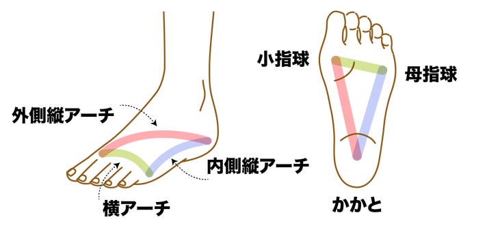 足裏には「かかと」「母趾球」「小趾球」を結ぶ3点バランスが存在します。