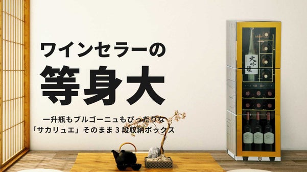 - ワインセラーを家に置くとどれくらいの存在感なのか確認できるリアルなワインセラー風ボックス。