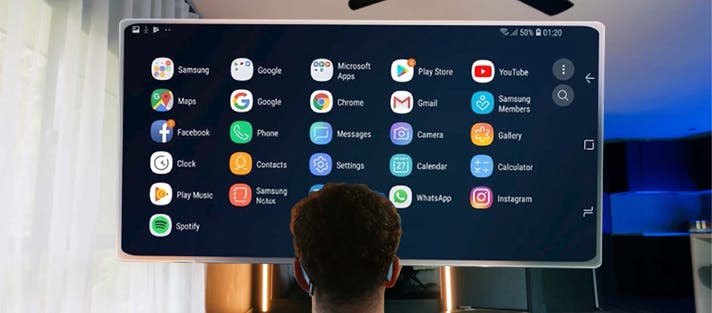 A. スマートデバイスと有線接続することで、YouTube、Netflix、Web会議ツールなど多くのサービスを視聴可能です。
