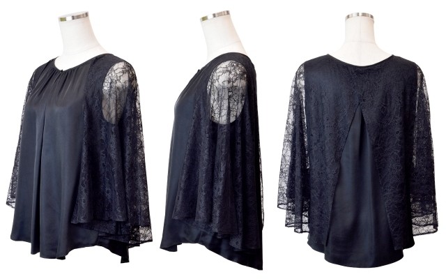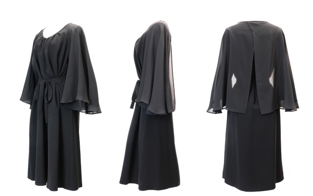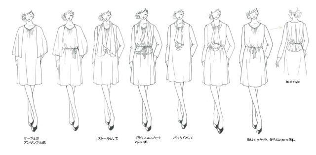 ケープ部分をストール風にしたり、ボウタイにしたりと、