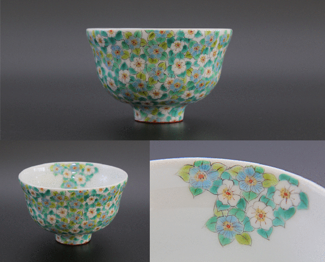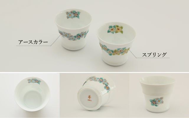 特上の天草陶土をしようしているので、透明感のあるミルキーな白磁から絵が透けて見えるほど。竹節のように削りをいれているので、滑らずに持ちやすいです。