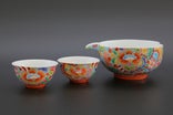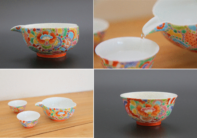 サイズ:酒器 高さ6 x φ13cm、杯 高さ3.5 x φ7cm