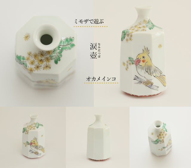 ・ミモザで遊ぶオカメインコ 涙壺 × 1