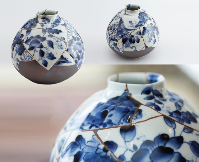 ・錆染付陶片紋花瓶 手造り (限定1品)