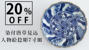 【応援割 先着10名様 20%OFF】染付唐草見込人物絵捻彫7寸皿