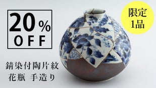 【超早割 先着1名様 20%OFF】錆染付陶片紋花瓶 手造り