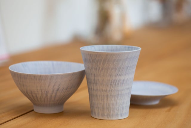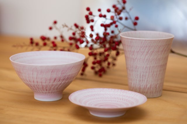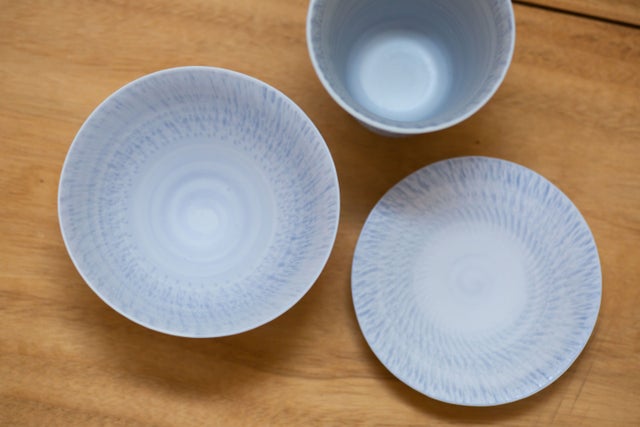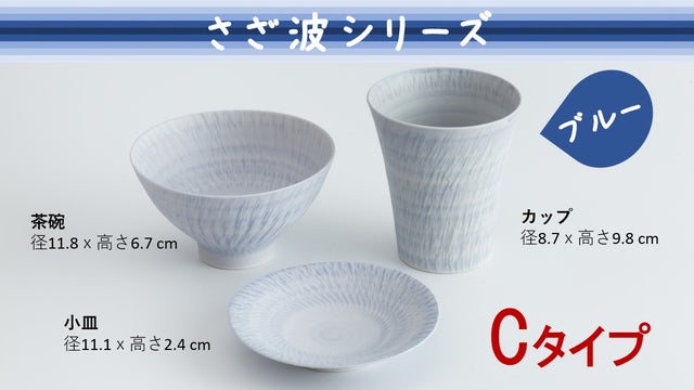 「さざ波シリーズ」の形状には、茶碗と小皿、カップの3種類があります。