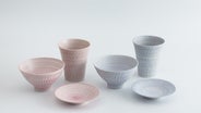 ピンク3個(茶碗、小皿、カップ)とブルー3個(茶碗、小皿、カップ)の計6個の組み合わせ