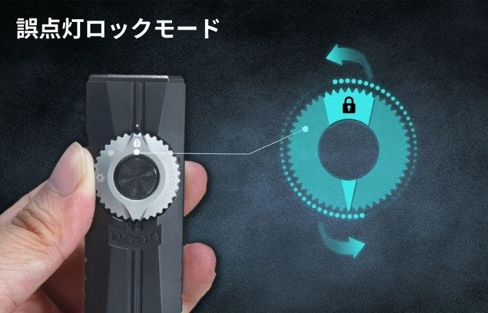 ArkⅡは、ダイヤルをロック位置に合わせるだけで誤点灯を防止し、無駄な電池消耗も回避できます。スイッチを何回も “カチカチ” 押してロックするタイプのライトと比べ、直感的でスピーディーにロックモードへ切り替え可能です。