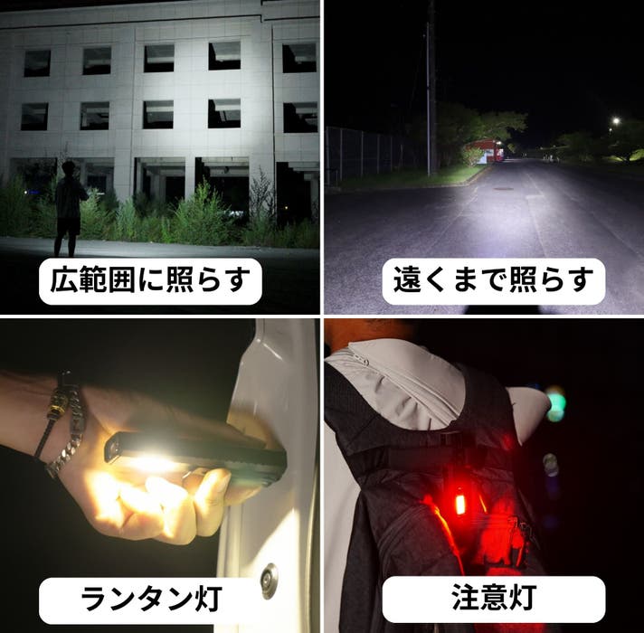 - 【サイドライト】白光はランタン灯、赤光は警告灯として。日常から災害時まで役立つ多機能設計