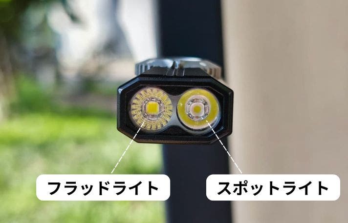 メインライトには2つの高効率LEDを採用。スポットライトは強力な集光で遠方をしっかり照らし、フラッドライトは広範囲を明るく均一に照射。シーンに合わせた切り替えで、近距離から遠距離まで自在にカバーします。