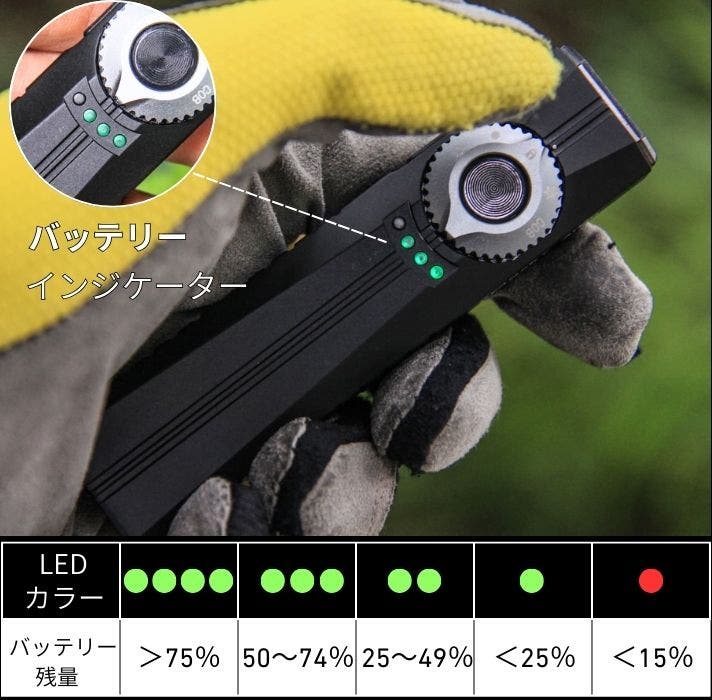 本体にはバッテリー残量を示す LEDインジケーター 付き。
