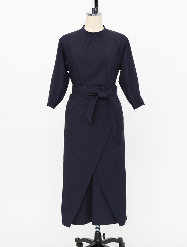 ワンピースの本体はウエストから裾に向けて、ゆるやかに広がるIラインなので、ラップデザインの絞り具合で自分に合ったシルエットに調整できます。