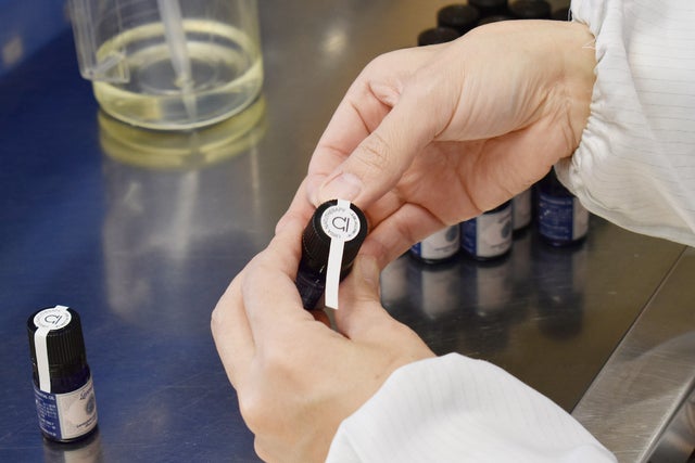 原料は湿度や温度を徹底管理。精油は社内基準に則り、残留農薬をチェック。充填はミクロの塵やバクテリアの混入も赦さない、集塵率99.97%の無菌室で行なっています。