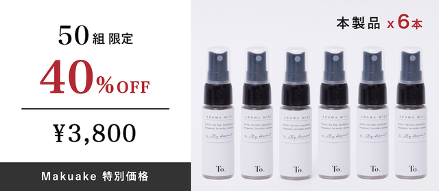 「Makuake(マクアケ)」は、実行者の想いを応援購入によって実現するアタラシイものやサービスのプラットフォームです。このページは、 コスメ・ビューティーカテゴリの 「今までなかった!To.精油アロマアルコール75%ミストの彩で新習慣を豊かに!」プロジェクト詳細ページです。