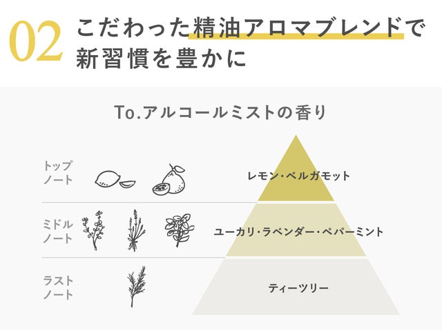 - 新ジャンル!マスク、アルコール噴霧が求められる毎日を心地よく過ごすための精油アロマを配合!