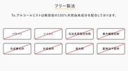天然成分植物から抽出した天然精油 (エッセンシャルオイル) とサトウキビ由来の天然発酵アルコール(基剤)のみで作った、合成香料、着色料、保存料などを使用しない天然由来のミストです。直接触れるものだからこそ、品質にこだわった天然成分だけを使用しています。