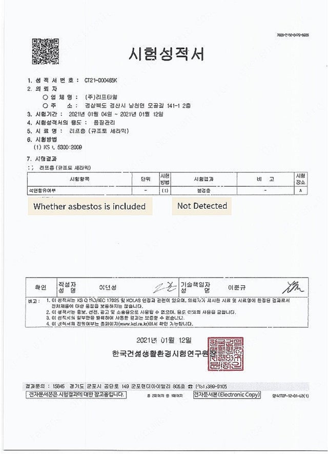 珪藻土ディフューザー製造過程もしくは原料にアスベストは一切使用しておりません。